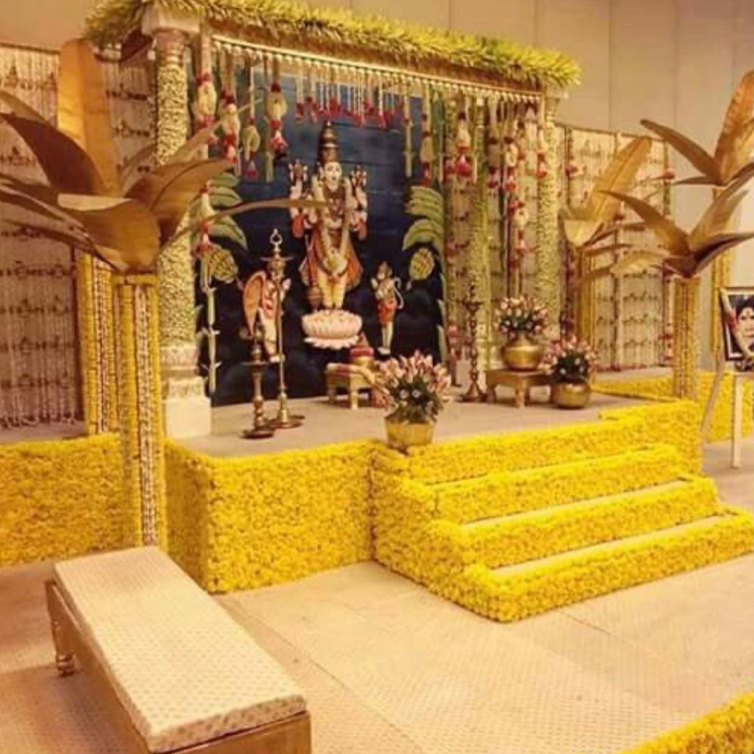 The Kalpana's Academy of Floral Designing offers A DIY Fresh Flower Decoration Workshop with Step-by-Step Instructions on the Theme ""Ganpati Flower Decoration"" Discover Trendy Ganpati Backdrop Concepts and Techniques.